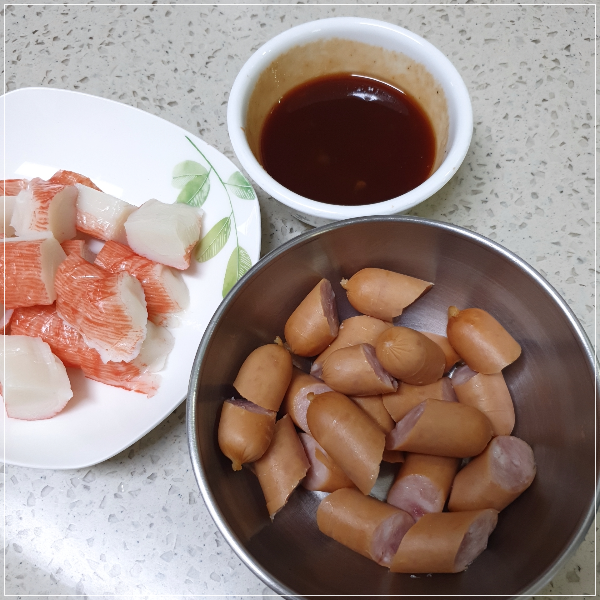 <밑반찬 만들기> 소시지 맛살볶음 재료