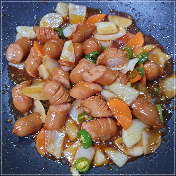 간단하게 휘리릭~ 볶으면 되는 감칠맛 나는 "소시지 맛살볶음" 만들어보자.