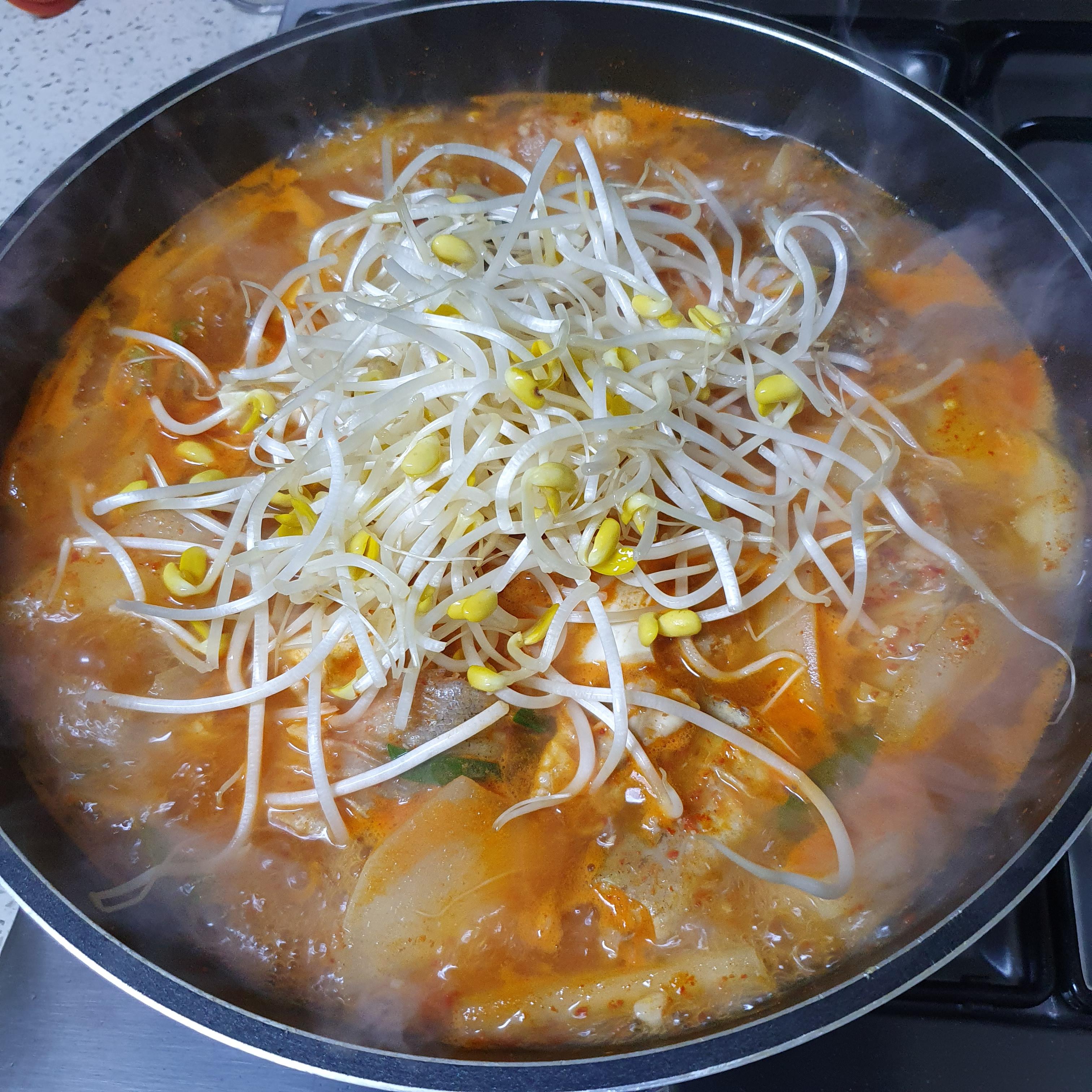 ◈ 콩나물을 넣기 전 간을 봤을 때 살짝 짭짤하다 생각이 들었는데, 마지막 콩나물을 넣고 보니 딱 맞아서 마무리했지만, 혹시라도 간이 부족할 경우 소금이나 액젓을 조금 넣어준다.