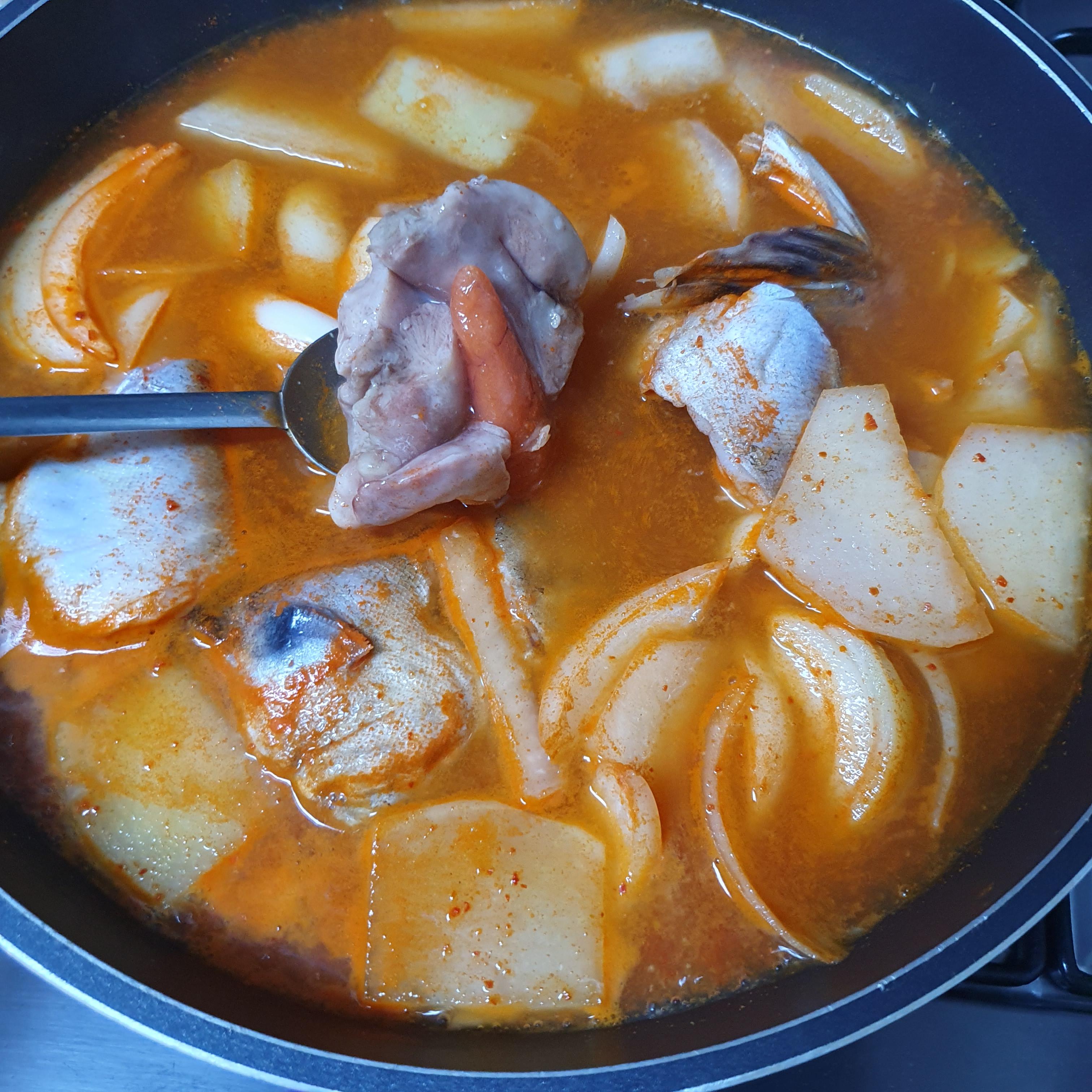 동태는 사다준 거라서 조각을 세보니 7조각되더라는... 아마 큰 동태였나 보다.