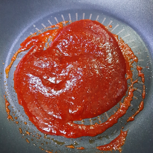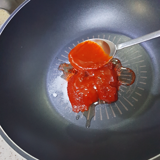 설탕 1스푼, 고춧가루 1스푼, 고추장 2스푼, 식용유 1/2스푼, 맛술 1스푼, 물엿 2스푼을 넣고 묽어지도록 살짝 끓여준다.