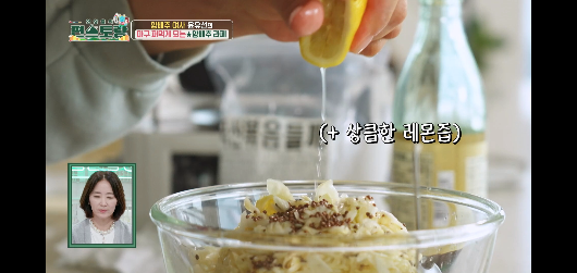 7. 통들깨와 들기름을 넣은 뒤 마지막으로 상급한 레몬을 꼭 짜서 넣어줍니다.