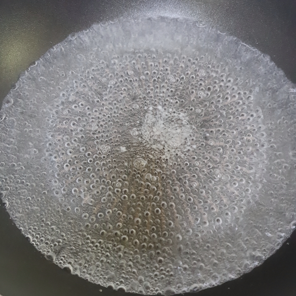 3. 궁중팬에 물을 올려 팔팔 끓여 준 뒤, 소금을 조금 넣어준다. (초록초록한 야채들은 대부분 색을 선명하게 해 주려고 소금을 넣어주는 거 같다.)