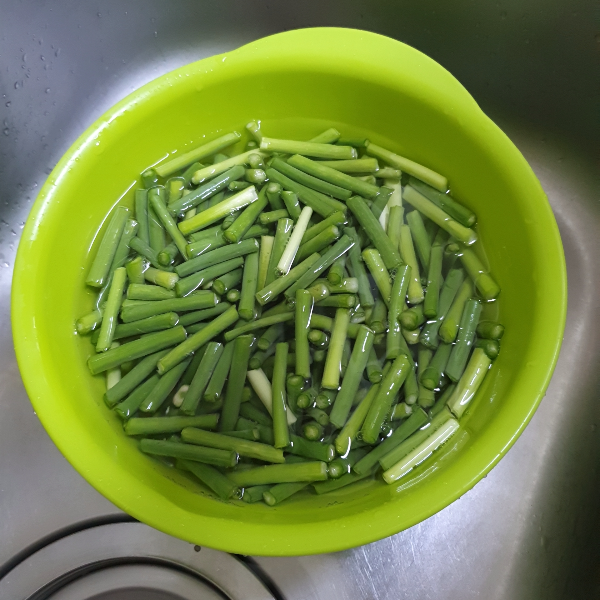 2. 손질해 놓은 마늘쫑을 깨끗한 물에 잘 세척을 한다.