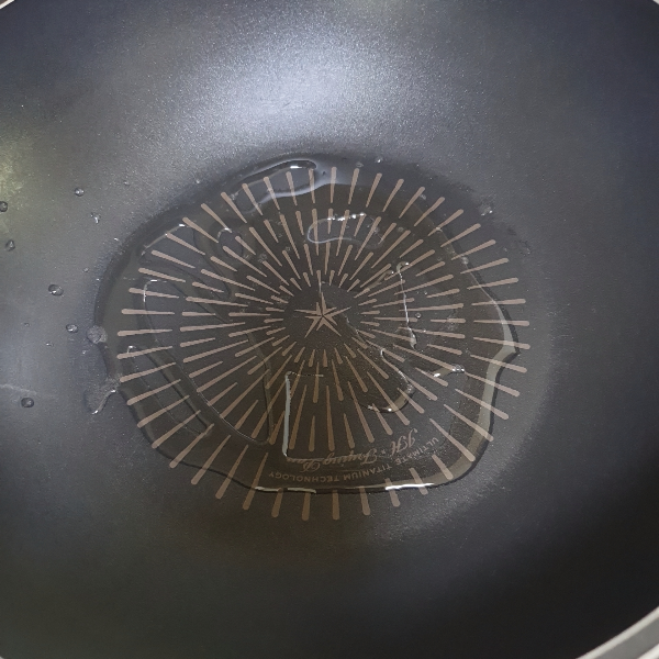 6. 팬을 달궈준 후 식용유를 1 ~ 2T 정도 넣어준 뒤, 준비해 둔 마늘쫑을 중간불에서 볶아준다.