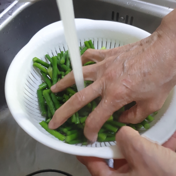 2. 손질해 놓은 마늘쫑을 깨끗한 물에 잘 세척을 한다.